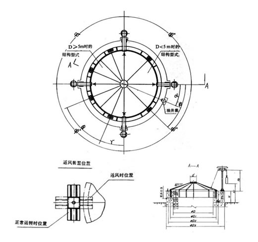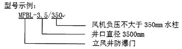 立風(fēng)井防爆門按風(fēng)機(jī)負(fù)壓分為不大于350mm水柱和不大于450mm水柱兩大類,按井口直徑有3個規(guī)格,共有6個型號規(guī)格,見下表: